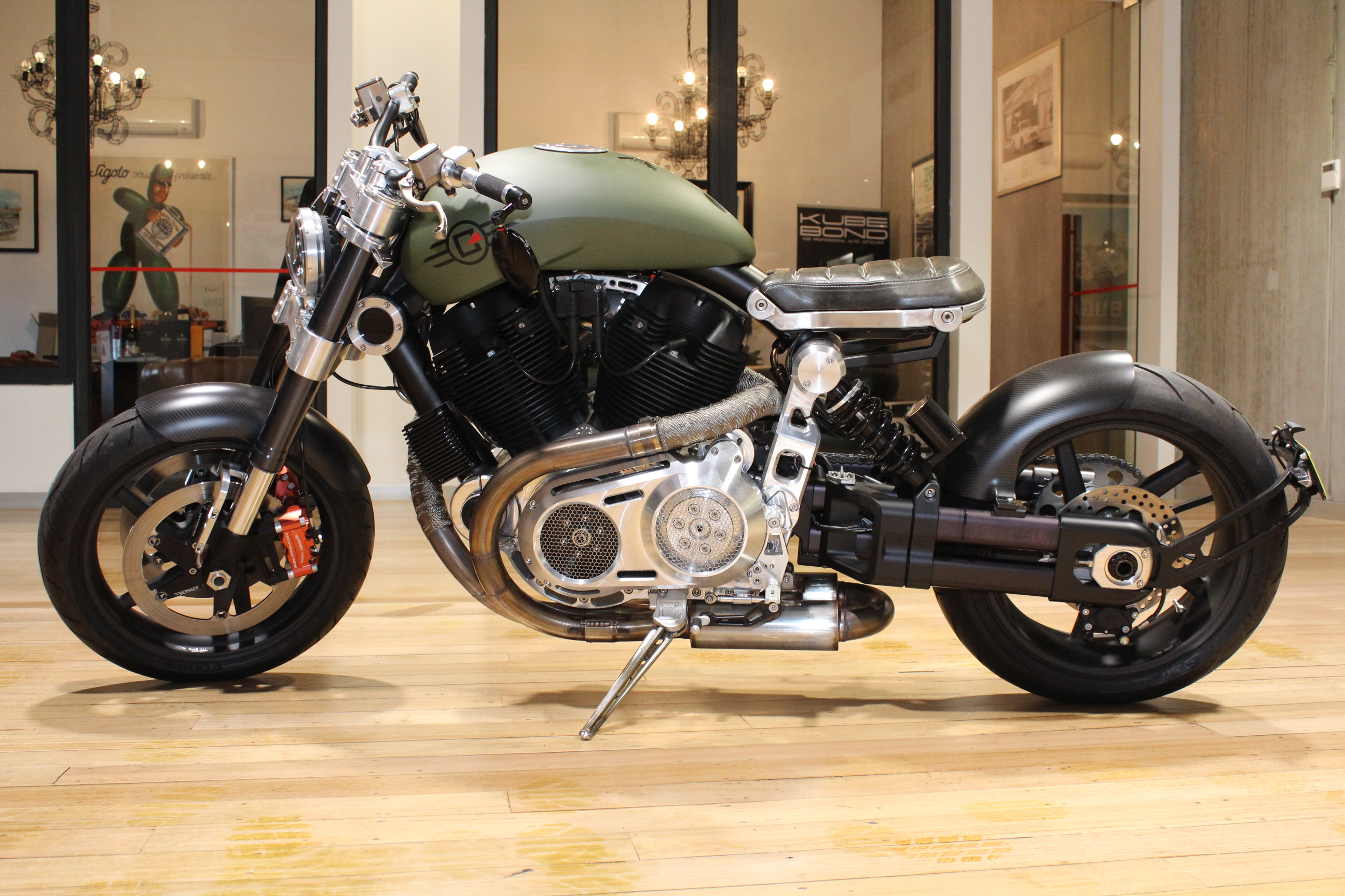 The stopping power is handled by front dual beringer 4 piston machined monobloc aerotec radial calipers and rear single beringer 4 piston machined monobloc aerotec radial calipers.